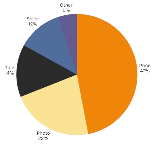 The results were clear: price and photos dominate first impressions. Nearly half of participants cited price as the primary factor influencing their initial interest, while photos were the next most important cue. Titles, descriptions, and seller information mattered less at first glance. This phase confirmed that trust-building begins with surface signals that are quickly and easily processed, helping users filter through large numbers of listings without overloading their attention