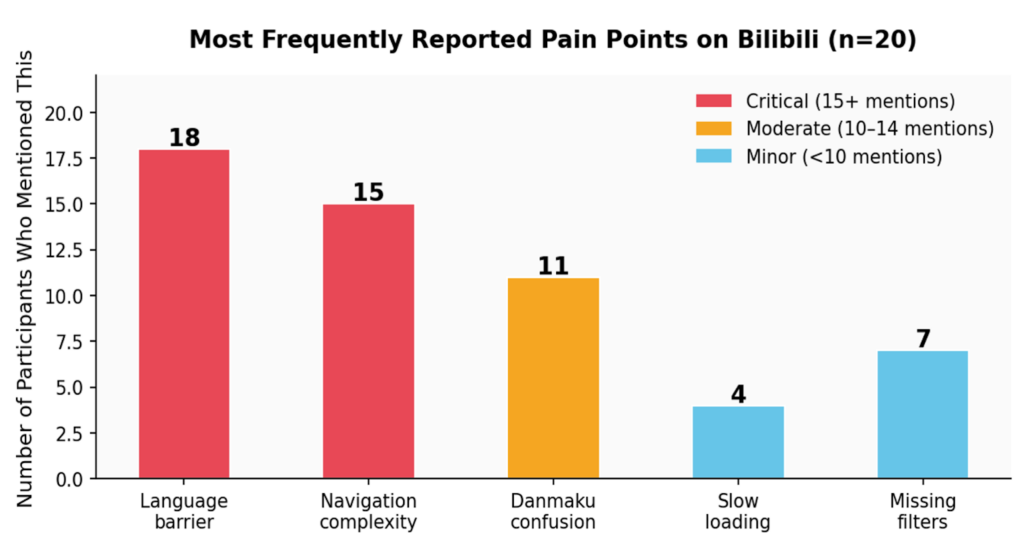 Most Frequently Reported Pain Points on Bilibili (n=20 participants)